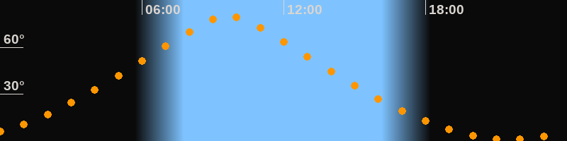 | Höchster Stand (Kulmination) | 09:39 Uhr (h = 79,7°) |