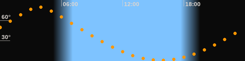| Höchster Stand (Kulmination) | 03:49 Uhr (h = 79,7°) |