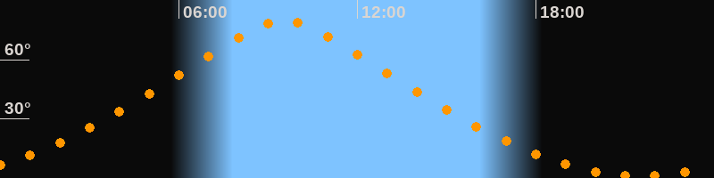 | Höchster Stand (Kulmination) | 09:32 Uhr (h = 79,7°) |