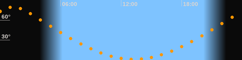 | Höchster Stand (Kulmination) | 01:14 Uhr (h = 79,7°) |