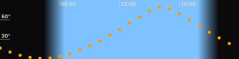 | Höchster Stand (Kulmination) | 16:15 Uhr (h = 79,7°) |