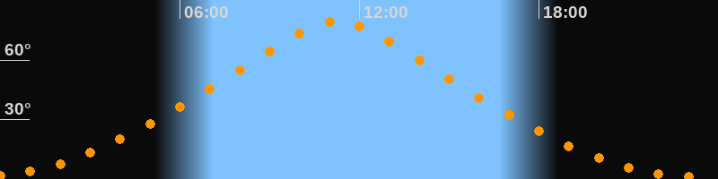 | Höchster Stand (Kulmination) | 11:15 Uhr (h = 79,7°) |