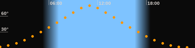 | Höchster Stand (Kulmination) | 11:00 Uhr (h = 79,7°) |
