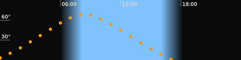 | Höchster Stand (Kulmination) | 08:23 Uhr (h = 68,4°) |