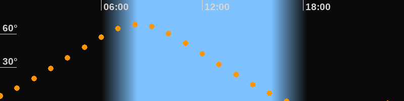 | Höchster Stand (Kulmination) | 08:11 Uhr (h = 68,4°) |