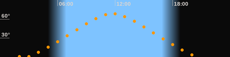 | Höchster Stand (Kulmination) | 11:43 Uhr (h = 68,4°) |