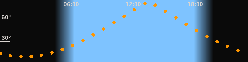 | Höchster Stand (Kulmination) | 14:22 Uhr (h = 86,5°) |