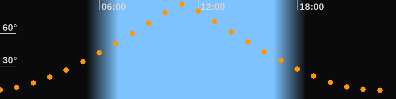 | Höchster Stand (Kulmination) | 11:03 Uhr (h = 86,5°) |