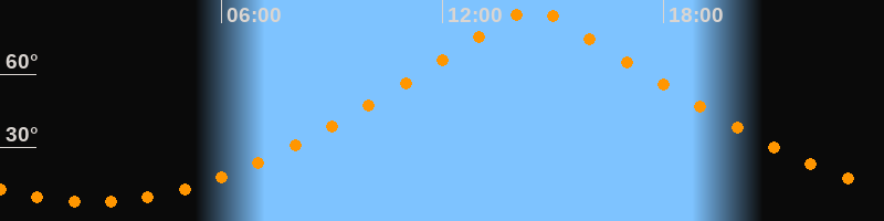 | Höchster Stand (Kulmination) | 14:27 Uhr (h = 86,5°) |
