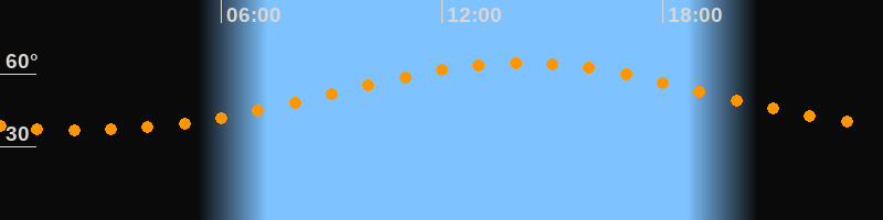 Höchster Stand (Kulmination)14:09 Uhr (h = 64,6°)
