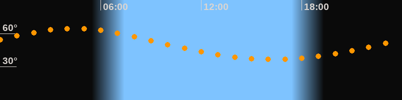Höchster Stand (Kulmination)04:23 Uhr (h = 64,6°)