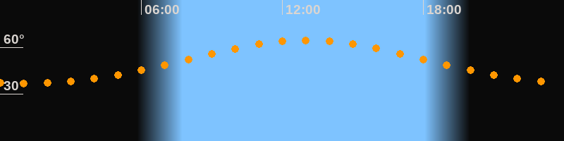 Höchster Stand (Kulmination)13:01 Uhr (h = 64,6°)