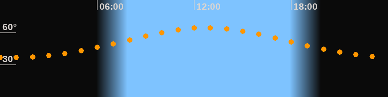 Höchster Stand (Kulmination)12:45 Uhr (h = 64,6°)