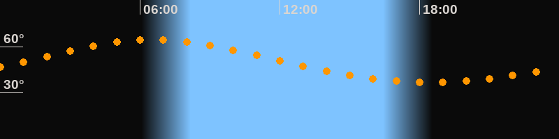 Höchster Stand (Kulmination)06:34 Uhr (h = 64,6°)