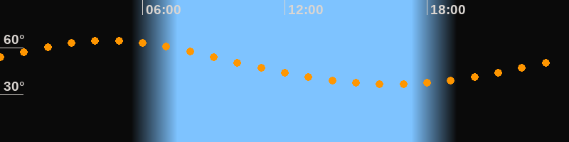 Höchster Stand (Kulmination)04:32 Uhr (h = 64,6°)