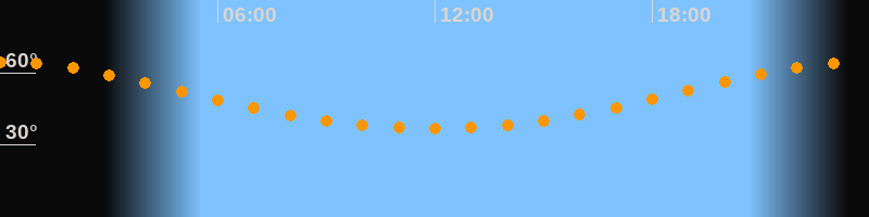 Höchster Stand (Kulmination)23:54 Uhr (h = 64,6°)