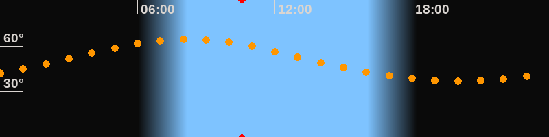 Höchster Stand (Kulmination)08:09 Uhr (h = 64,6°)