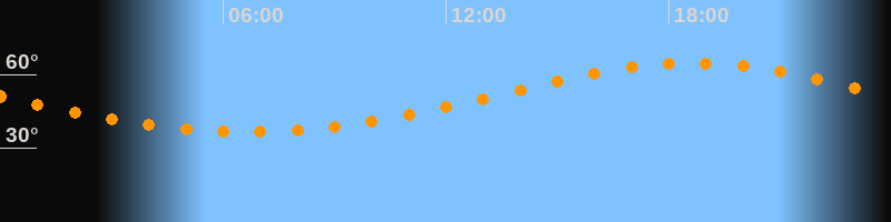 Höchster Stand (Kulmination)18:37 Uhr (h = 64,6°)