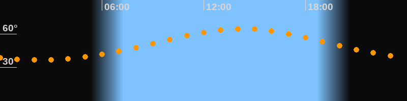 Höchster Stand (Kulmination)14:13 Uhr (h = 64,6°)