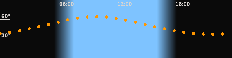 Höchster Stand (Kulmination)09:57 Uhr (h = 64,6°)