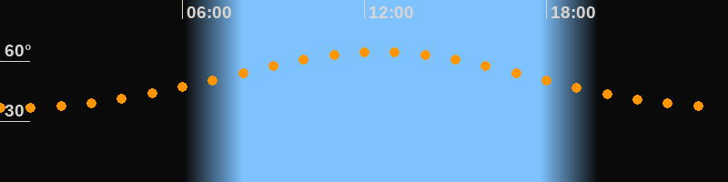Höchster Stand (Kulmination)12:28 Uhr (h = 64,6°)