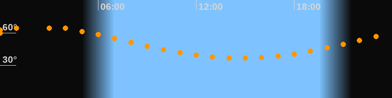 Höchster Stand (Kulmination)01:46 Uhr (h = 64,6°)