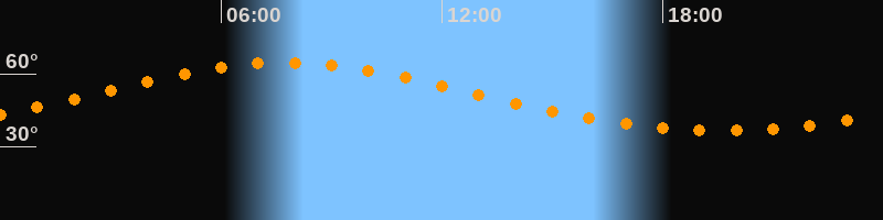 Höchster Stand (Kulmination)07:45 Uhr (h = 64,6°)