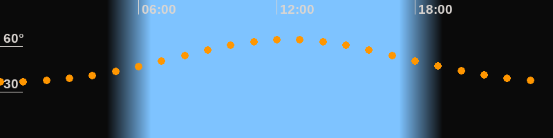 Höchster Stand (Kulmination)12:31 Uhr (h = 64,6°)