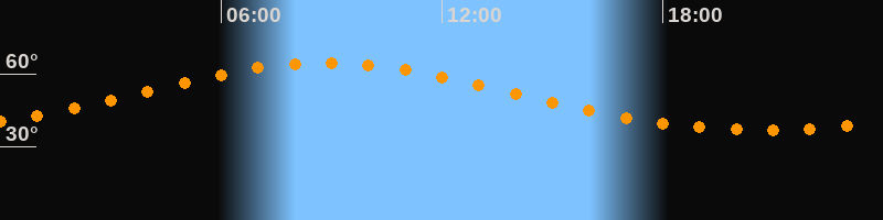 Höchster Stand (Kulmination)08:50 Uhr (h = 64,6°)