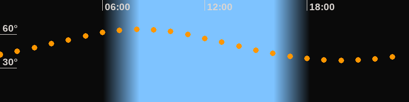 Höchster Stand (Kulmination)08:11 Uhr (h = 64,6°)
