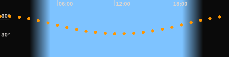 Höchster Stand (Kulmination)00:23 Uhr (h = 64,6°)