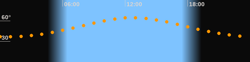 Höchster Stand (Kulmination)12:43 Uhr (h = 64,6°)