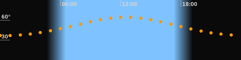 Höchster Stand (Kulmination)12:28 Uhr (h = 64,6°)