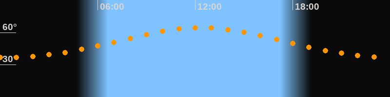 Höchster Stand (Kulmination)12:20 Uhr (h = 64,6°)