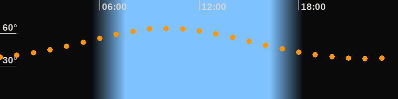 Höchster Stand (Kulmination)10:06 Uhr (h = 64,6°)