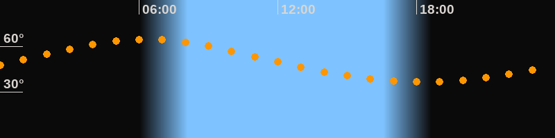 Höchster Stand (Kulmination)06:18 Uhr (h = 64,6°)