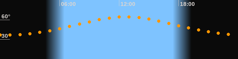 Höchster Stand (Kulmination)12:40 Uhr (h = 64,6°)