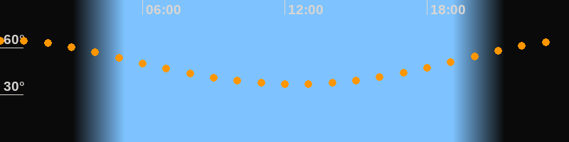 Höchster Stand (Kulmination)00:21 Uhr (h = 64,6°)