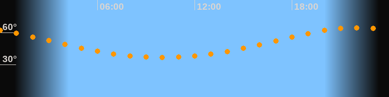 Höchster Stand (Kulmination)22:00 Uhr (h = 64,6°)