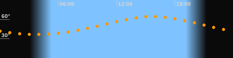 Höchster Stand (Kulmination)15:42 Uhr (h = 64,6°)