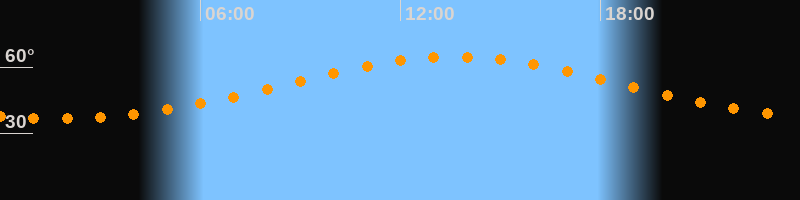Höchster Stand (Kulmination)13:37 Uhr (h = 64,6°)