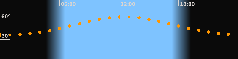 Höchster Stand (Kulmination)12:31 Uhr (h = 64,6°)