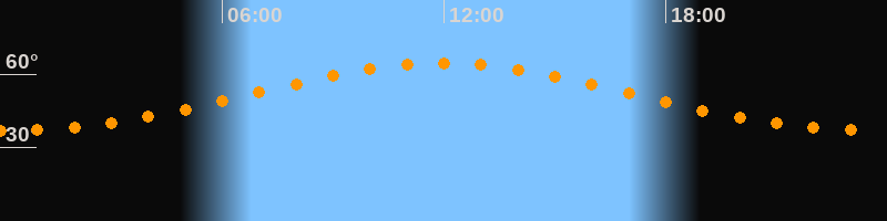 Höchster Stand (Kulmination)11:56 Uhr (h = 64,6°)