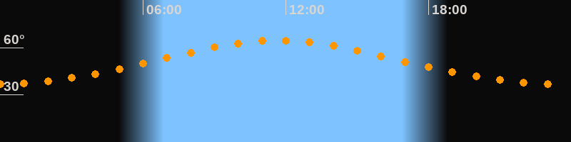 Höchster Stand (Kulmination)11:40 Uhr (h = 64,6°)