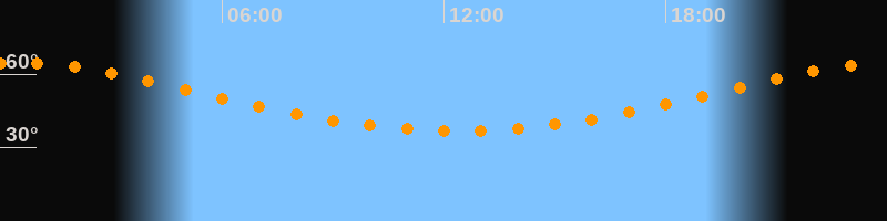 Höchster Stand (Kulmination)00:20 Uhr (h = 64,6°)
