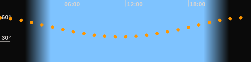 Höchster Stand (Kulmination)23:29 Uhr (h = 64,6°)