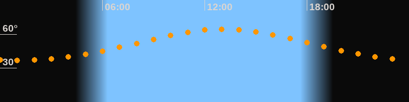 Höchster Stand (Kulmination)13:04 Uhr (h = 64,6°)