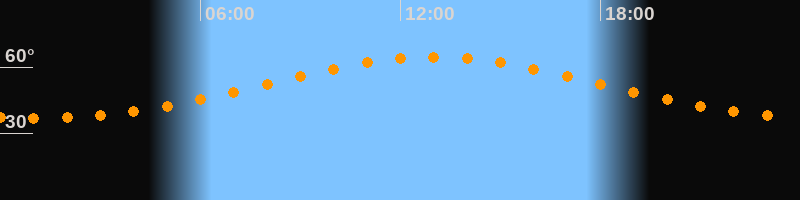 Höchster Stand (Kulmination)13:00 Uhr (h = 64,6°)