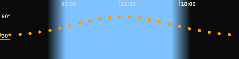 Höchster Stand (Kulmination)12:21 Uhr (h = 64,6°)