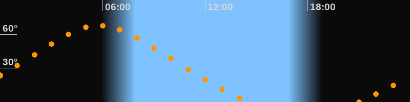 | Höchster Stand (Kulmination) | 05:48 Uhr (h = 67,8°) |